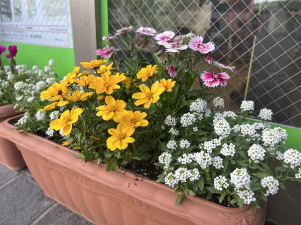 ご存知でしたか?尾久駅前にあるお店の玄関には季節のお花が並べてあります。 昨日新しいお花になりました。 会長が丁寧にお手